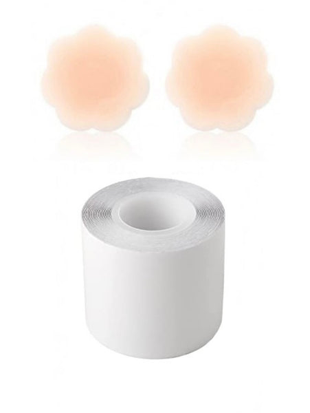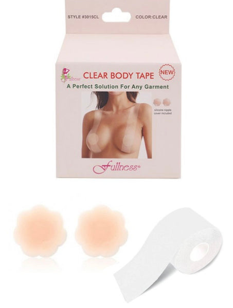 Body tape, waterproof, sweat proof, fitness. Silicone nipple covers. 2” width 5.5 yards length adhesive. 100% silicone.