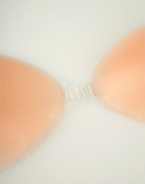 Silicone adhesive bra cups with front closure bra cups with adhesive inside, free from any straps and side extension. Seamless, backless, strapless and invisible under sheer clothing. Shaping bra gives enhanced cleavage and fullness. This bra is perfect for low-cut, plunging necklines. Cups are washable, reusable and easy to care for. 100% silicone.