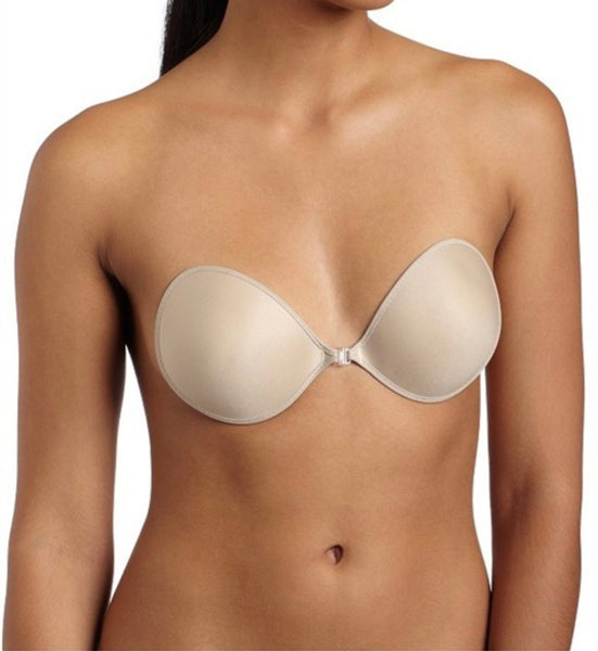 Super lightweight bra with adhesive inside the cups. Clear plastic clasp (front closure for cleavage & lift). Soft and light bra for the most natural feels and look. Free from any straps & side extendion. Invisible under any sheer clothing. Reusable (easy to apply and easy to remove)
