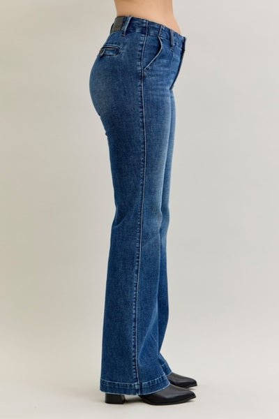 Judy Blue, mid-rise, tummy control jeans in a classic straight leg in petite length.
