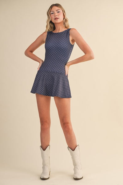 Designed with a modern drop waist and breezy silhouette, this dress blends effortless style, with all-day comfort. The soft, stretch knit fabric moves with you and features sleeveless style, scoop back, flared skirt, full shorts with pockets, and removeable bra pads.